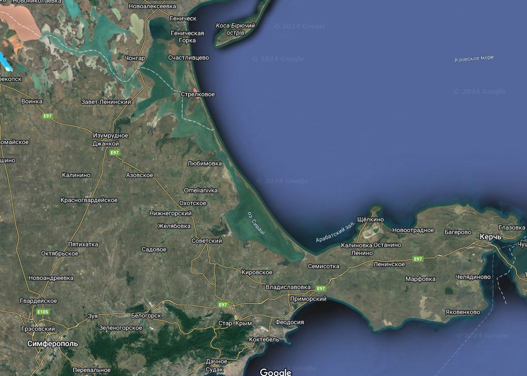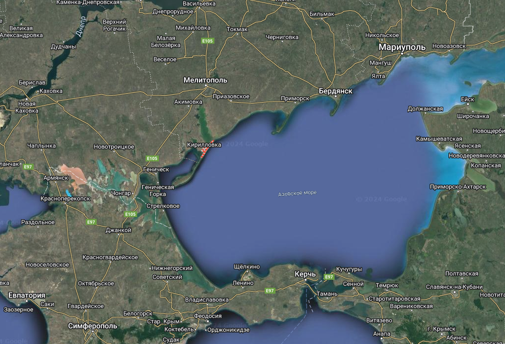 И в это же время с разницей в несколько минут был подбит самолёт Ил-22М11, который нёс боевое дежурство в районе населённого пункта Стрелковое. Населённый пункт находится на косе «Геническая», восточнее Чонгарского моста известного по неоднократному нанесению ударов по нему ВСУ. Это ещё дальше от позиции украинских войск, чем Кирилловка. Удаление составляет 195 км.