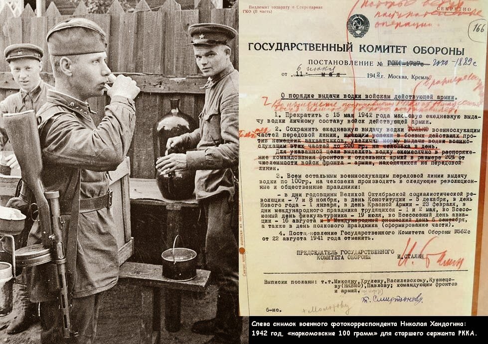 На Новый год, как и в другие праздничные дни, военнослужащим в соответствии с постановлением Госкомитета обороны от 6 июня 1942 года выдавались 100 грамм водки. Их еще называли «наркомовские 100 грамм».