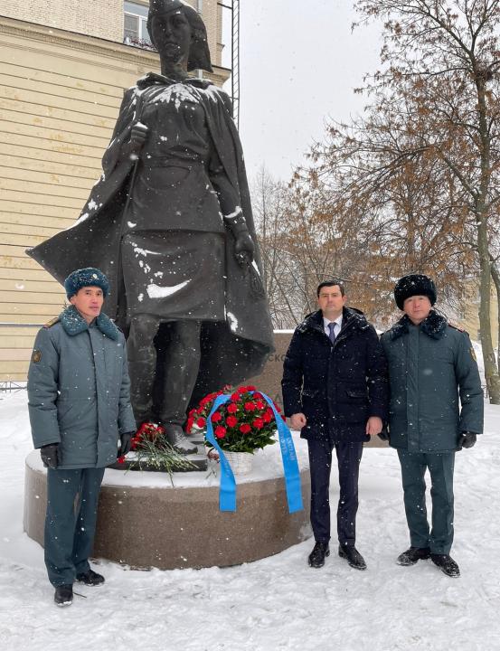 Генеральный консул Казахстана в Санкт-Петербурге Дмитрий Михно возложил цветы к памятнику Героя Советского Союза Алии Молдагуловой. Также он провел круглый стол в школе, где училась казахская героиня в честь 80-летия со дня подвига, сообщает Sarbaz.kz.