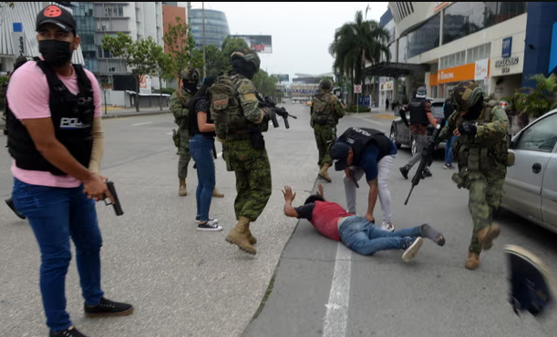 Страну сотрясают взрывы, похищения людей и беспорядки в тюрьмах с тех пор, как Нобоа в понедельник объявил чрезвычайное положение по всей стране, после того, как известный лидер банды Адольфо «Фито» Масиас сбежал из тюрьмы в Гуаякиле.