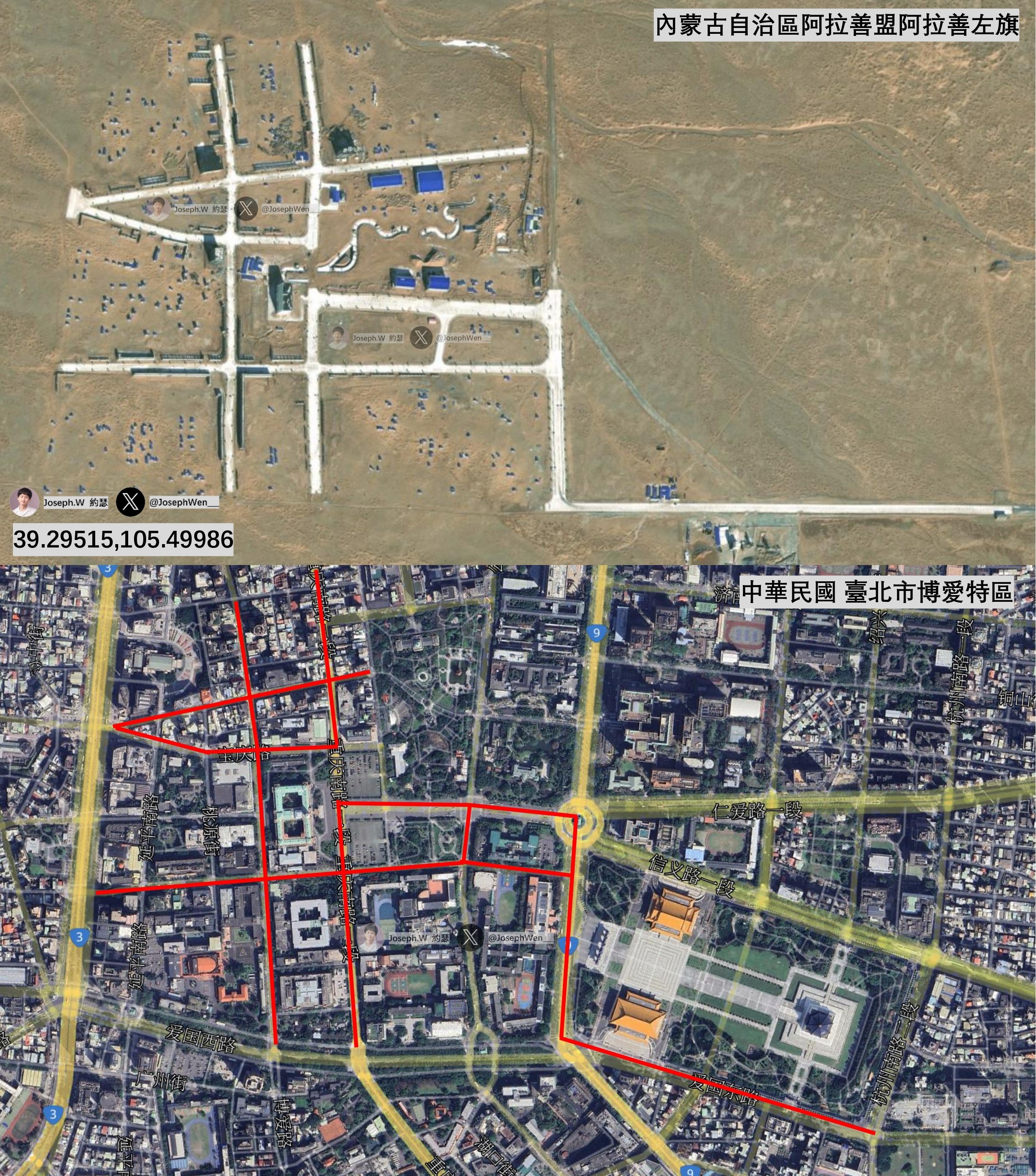 Тайваньский военный аналитик опубликовал снимок со спутника, на котором изображен подробный макет важнейшего административного района Тайбэя, разработанный для тренировок во Внутренней Монголии.