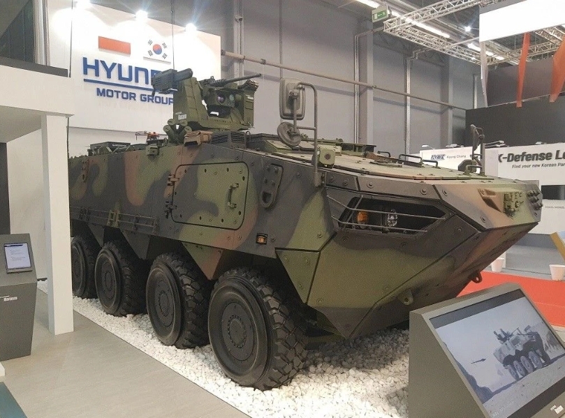 Колесный бронетранспортер К808 производства этого предприятия также представлен на выставке Hyundai. При этом ключевым плюсом является гибкость в различных конфигурациях.