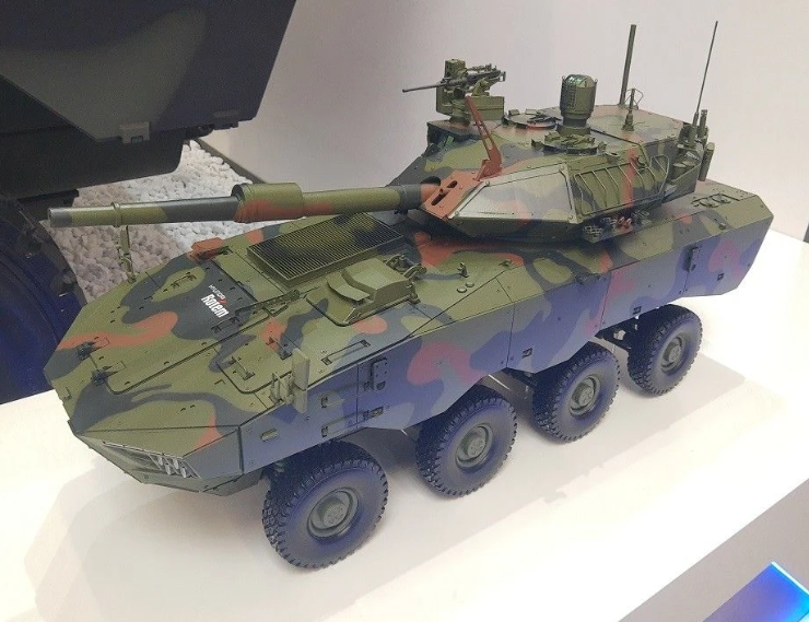 Так, на своем стенде Hyundai также представляет модели колесного бронетранспортера нового поколения большего размера, чем K808. Одна из моделей оснащена польской башней, другая — итальянской башней HITFACT-MkII, вооруженной 120-мм гладкоствольной пушкой.