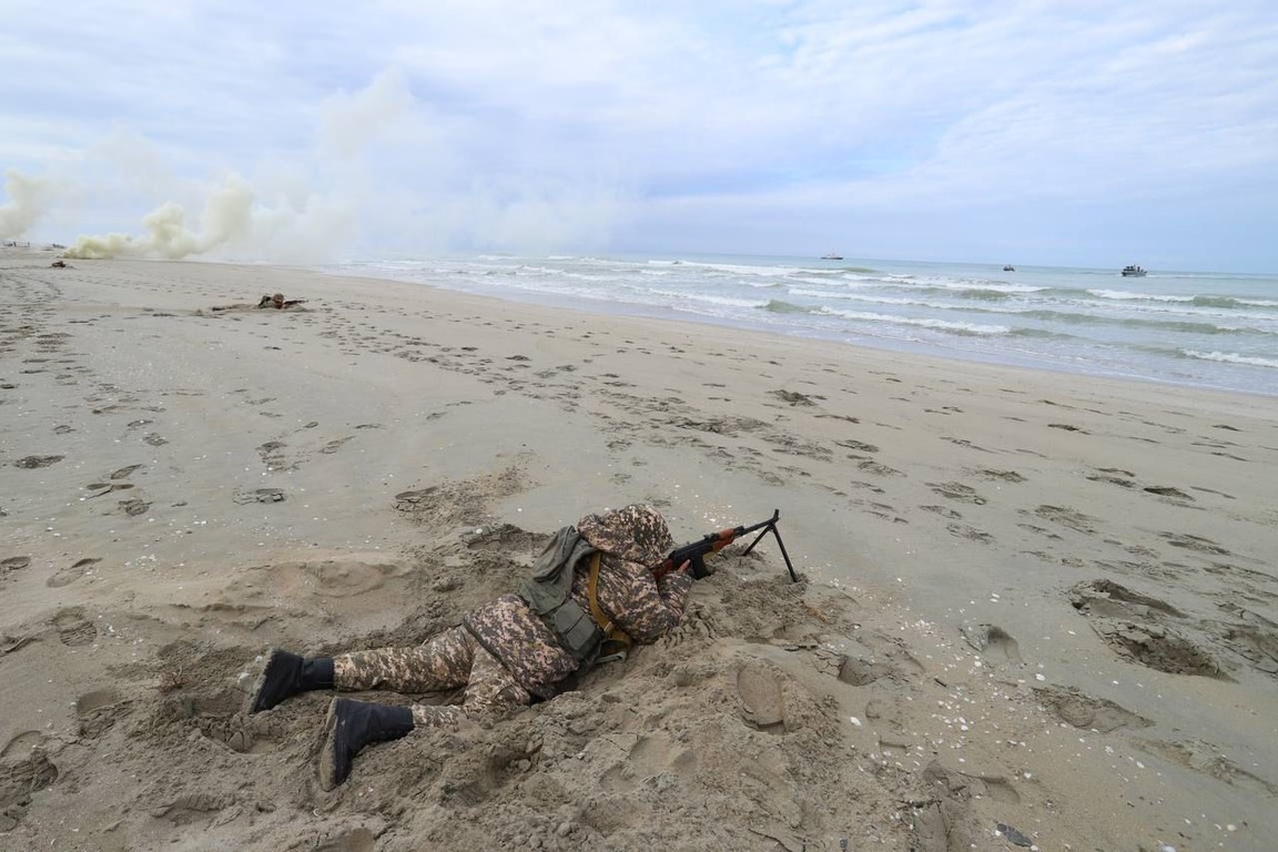 В ходе проведения тактико-специальных учений было организовано взаимодействие с подразделениями Сухопутных войск, Военно-морских сил и Сил воздушной обороны ВС РК. Данные структуры продемонстрировали свое мастерство по отражению условной атаки на морской порт «Курык» в Каракиянском районе.