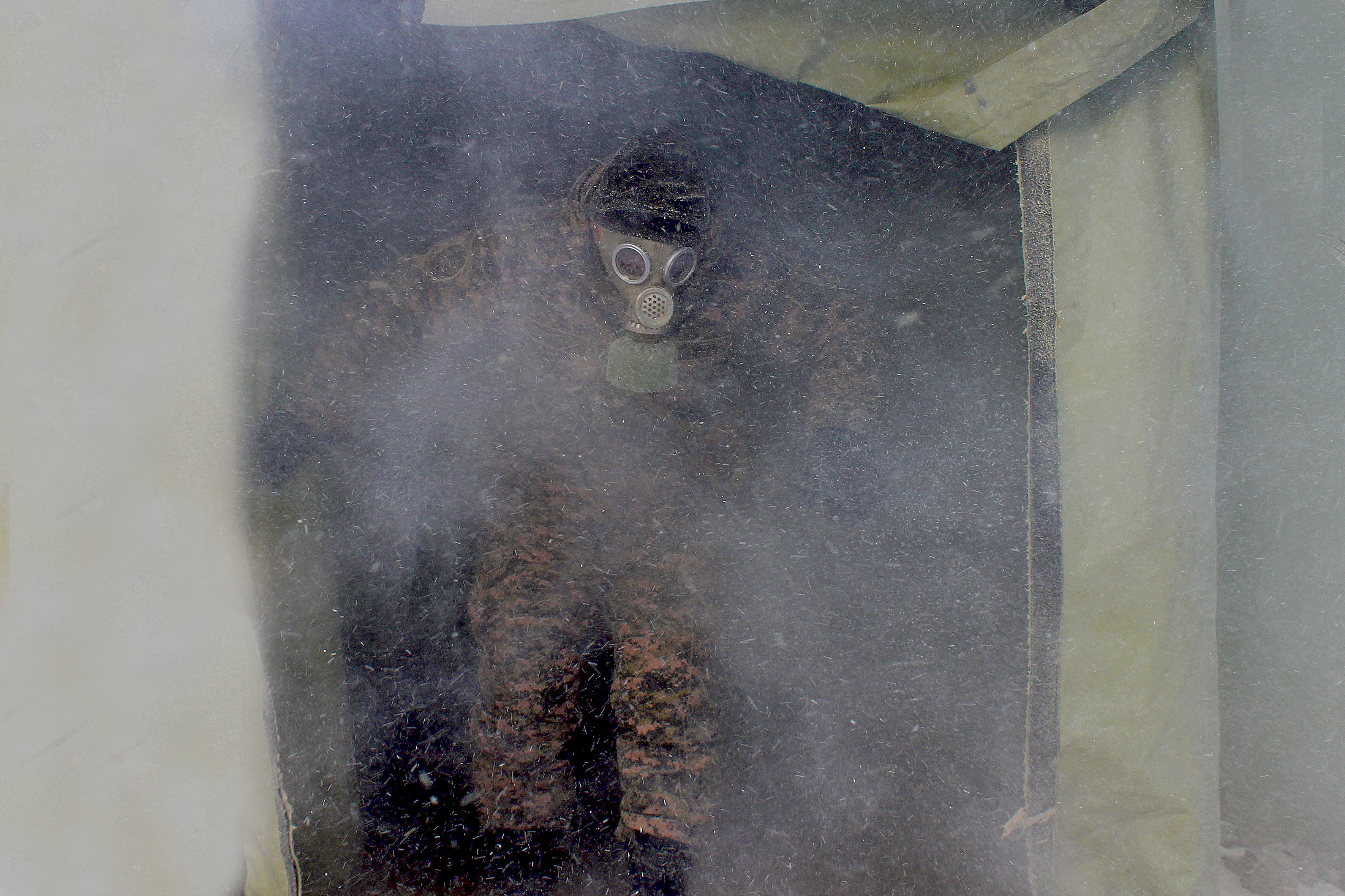 Военнослужащие войсковой части 06708 в Приозерске протестировали противогазы. Бойцы заходили в палатку с дымовой завесой, рассказал Sarbaz.kz начальник службы радиационной, химической и биологической защиты, экологической безопасности и охраны окружающей среды старший лейтенант Нурасылкожа Сейдикарим.
