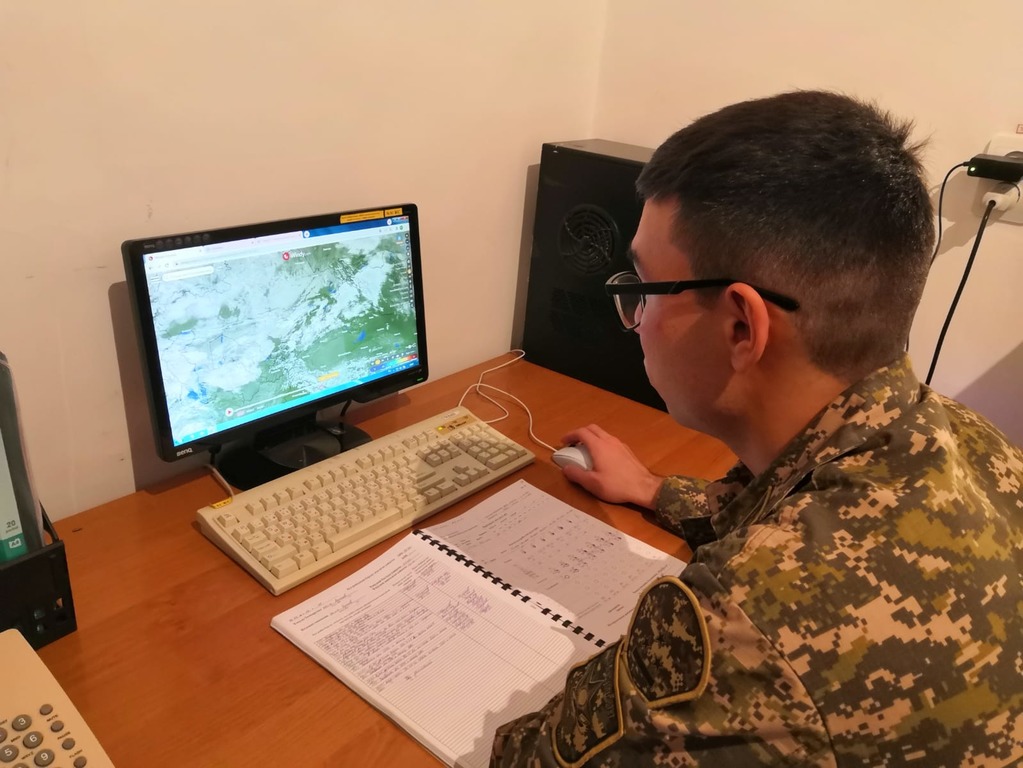 Современная военная метеорологическая служба – это целый штат специалистов, выполняющих свои функции. К примеру, наблюдатели заступают на дежурство и осуществляют визуальное наблюдение за погодой, измеряют при помощи метеорологических средств значения метеорологических элементов. Все данные наблюдения они записывают (аккумулируют) и передают централизованно в метеоцентр Астаны, где, учитывая все полученные данные, составляется график перелетов.