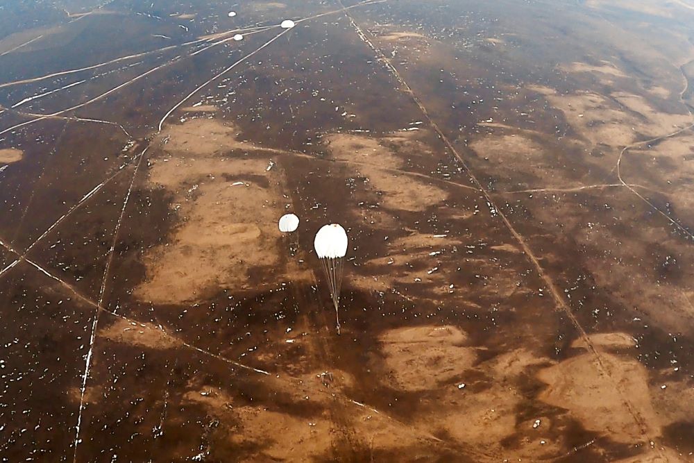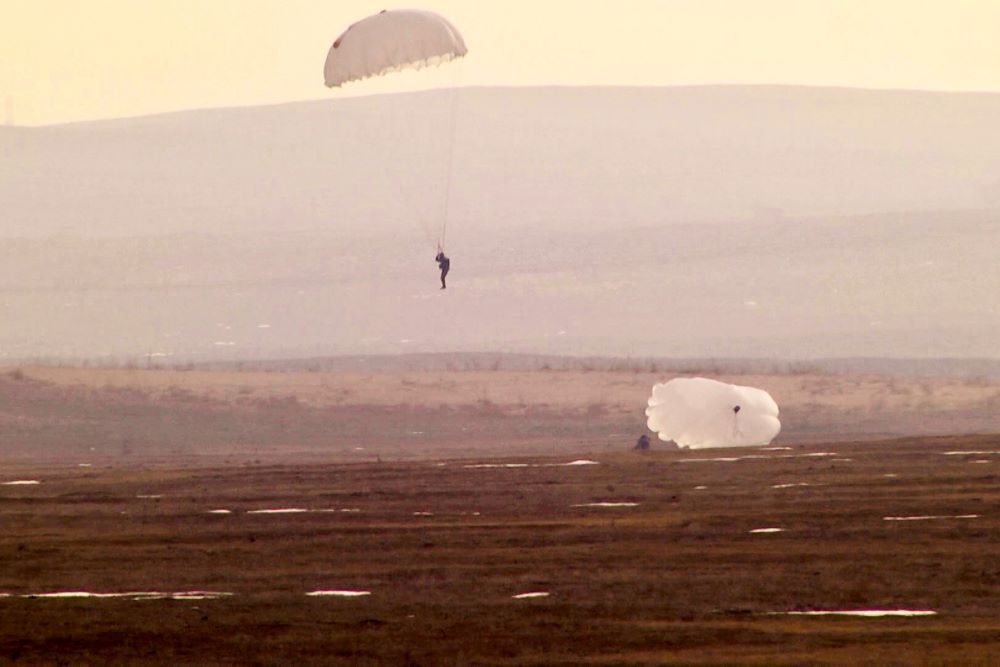 Около 100 военнослужащих совершили прыжки из вертолета Ми-17 с высоты 800 метров на разных типах парашютов: Д-6 четвертой серии – для учебно-тренировочных и боевых прыжков, парашютах типа «крыло» – «Беркут-2» и «Мальва».