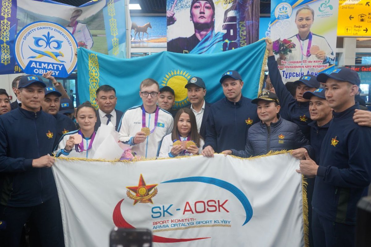 Армейских спортсменов – чемпионов и призеров Азиатских игр, состоявшихся в китайском городе Ханчжоу, торжественно встретили сослуживцы в международном аэропорту города Алматы.
