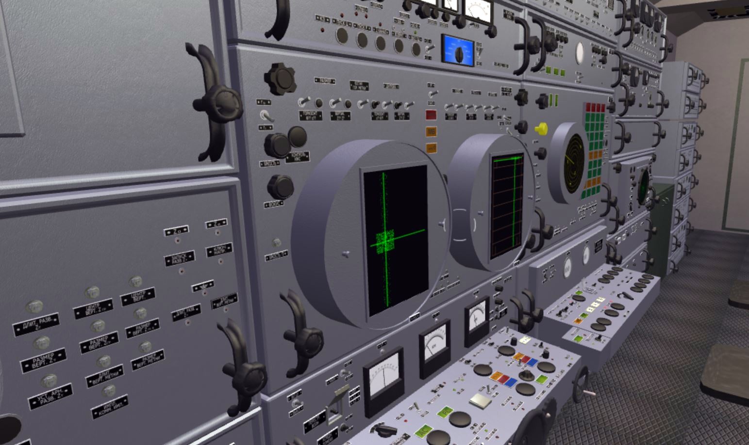 На демонстрации разработчики показали работу симулятора зенитно-ракетного комплекса – детализация и реализм впечатляют. Это не как в компьютерной игре: навел, выстрелил. Для функционирования ЗРК нужен расчет из нескольких человек. Командир батареи выполняет подготовку вооружения и выбор цели, офицер наведения должен навести комплекс на цель, ориентируясь по индикаторам, проконтролировать корректность наведения пусковых установок и произвести пуск, как только цель достигнет радиуса поражения. Операторы ручного сопровождения выполняют контроль результата стрельбы.