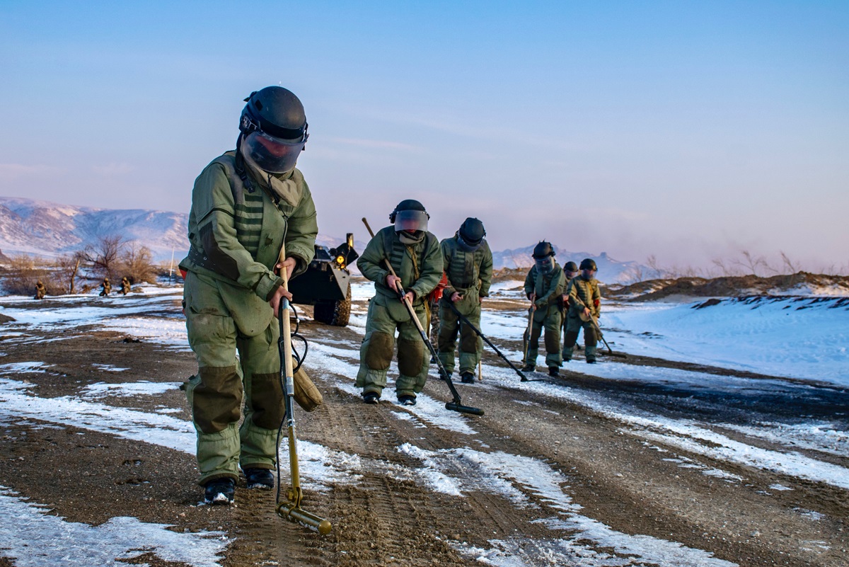 Военнослужащие инженерно-саперной бригады отработали занятия по обнаружению минных полей по их характерным признакам и практическому уничтожению мин путем подрыва.