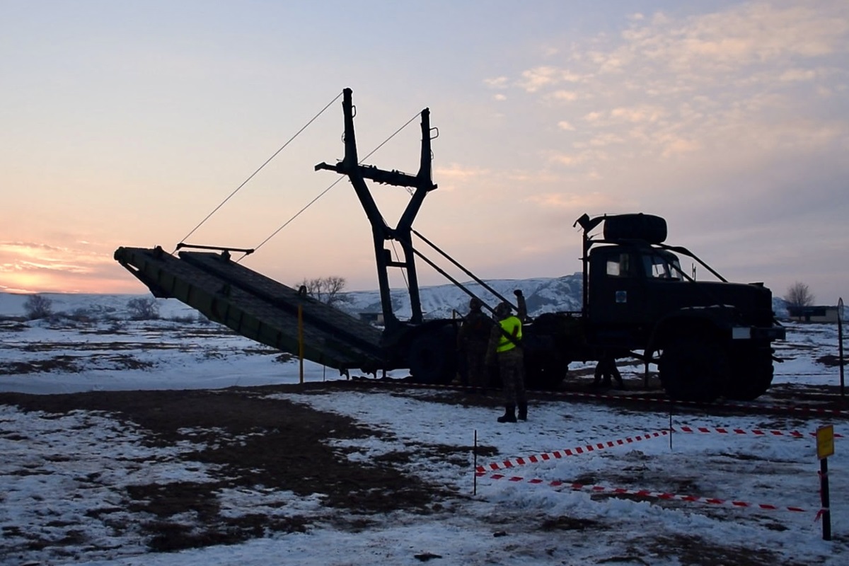 Отряд обеспечения движения в полевых условиях организовали переправу войск с применением тяжелого механизированного моста на базе грузового автомобиля повышенной проходимости «Краз-255».