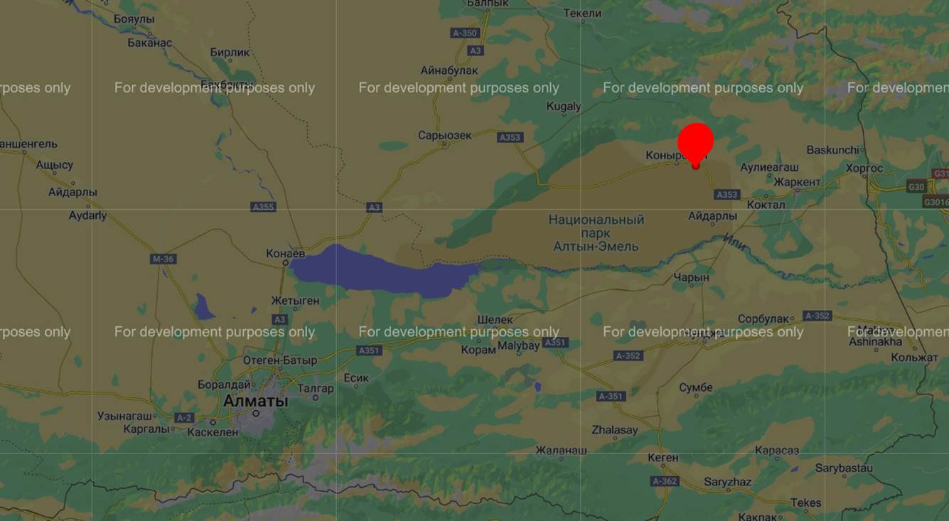 Эпицентр землетрясения расположен в 232 км на северо-восток от г. Алматы и в 50 км. западнее города Жаркент.
