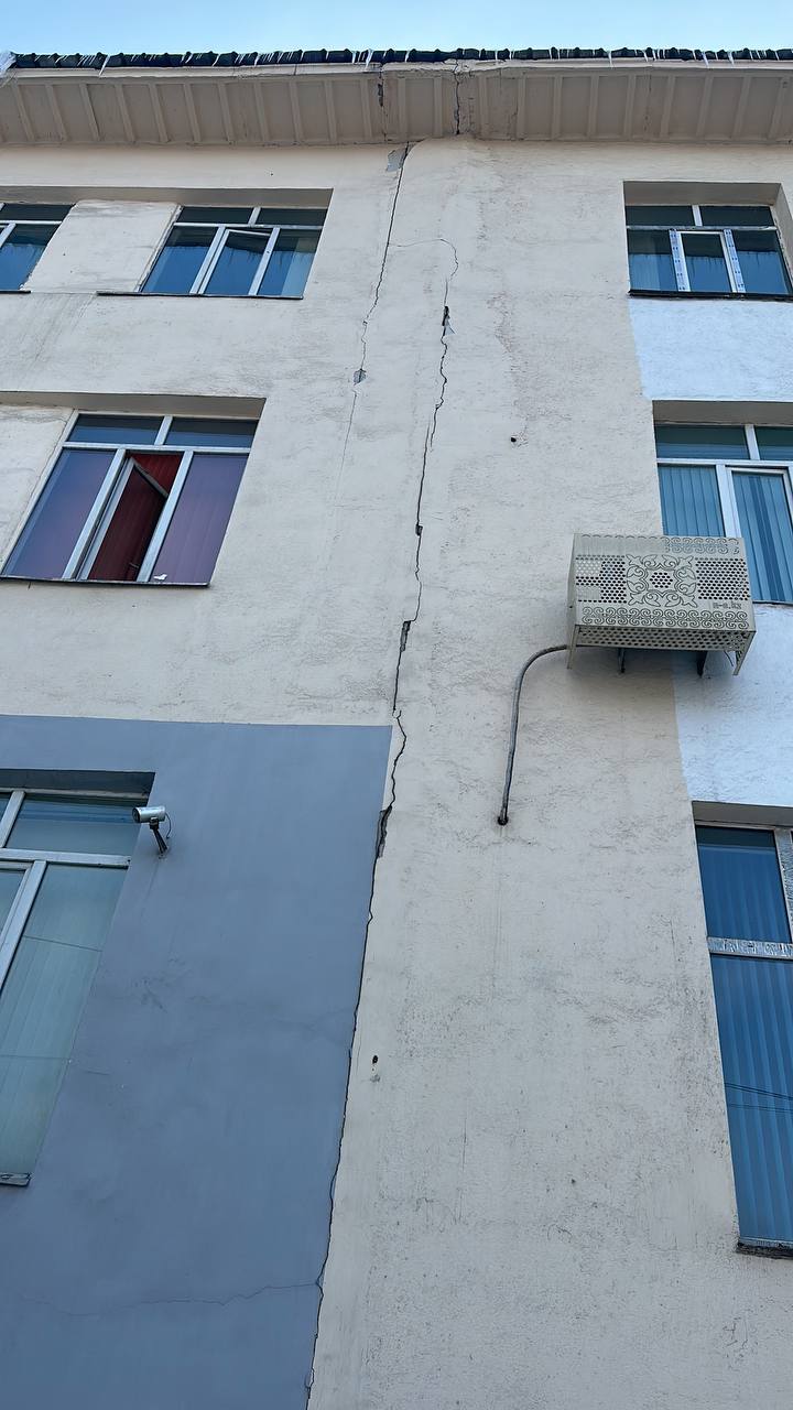 Пострадал корпус КазНАИУ. Есть трещина на стене Алматинского колледжа строительства и менеджмента.