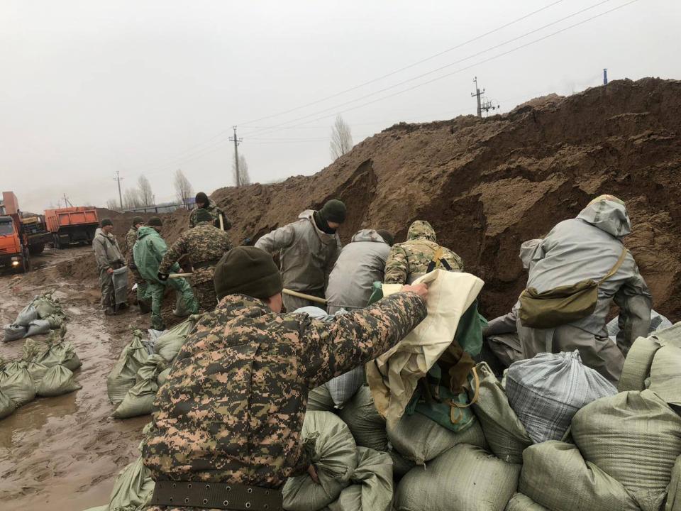 Тем временем, более ста военнослужащих бригады территориальной обороны Западно-Казахстанской области принимают участие в борьбе с наводнением.