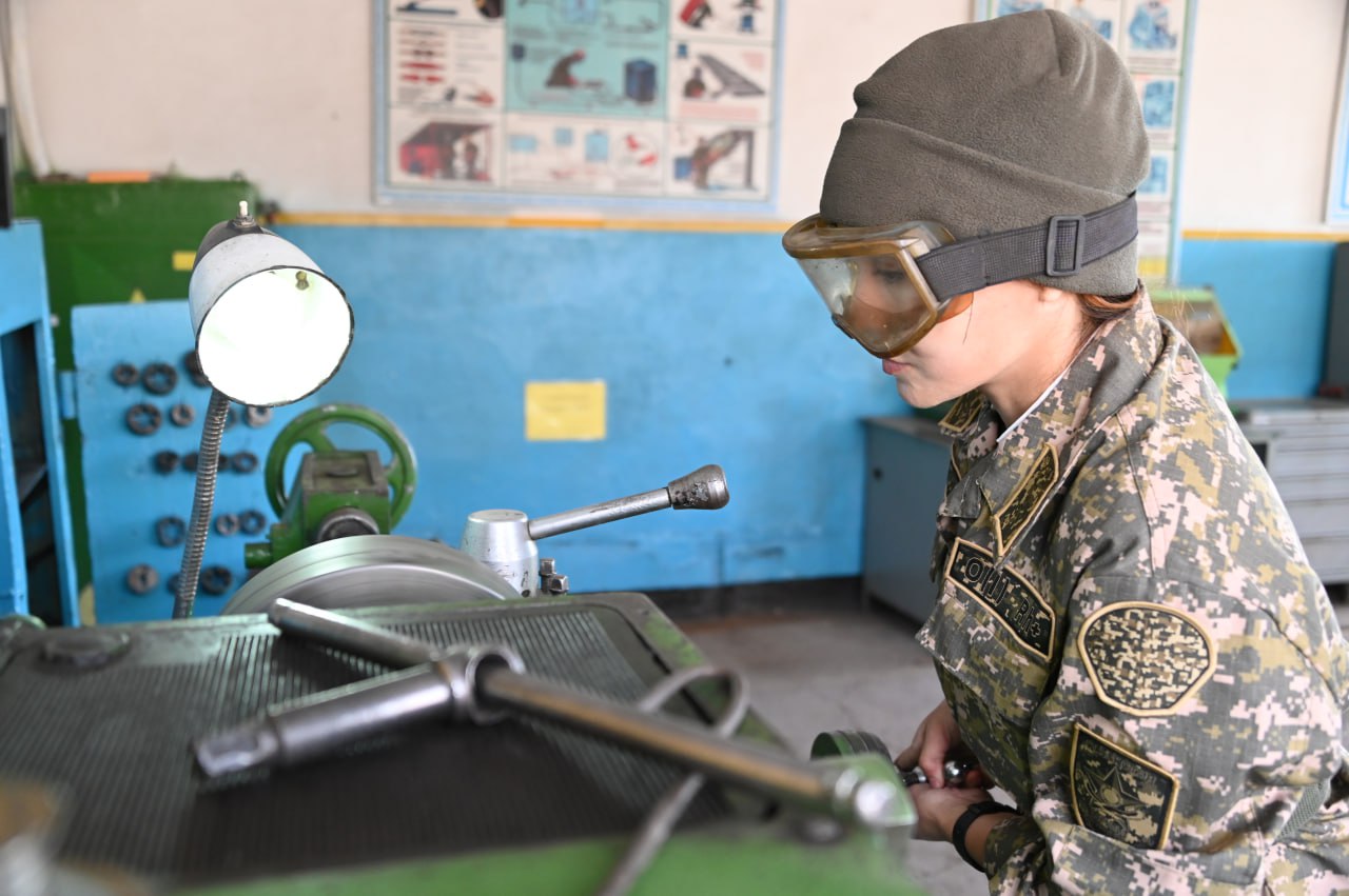 Военнослужащая по контракту Айгуль Тусупбаева – представитель редкой для «слабого пола» профессии, она работает токарем в ремонтной роте войсковой части 31775 Регионального командования «Астана». В ее умелых руках металл приобретает нужную форму, глядя на это, мужчины-коллеги не перестают удивляться.