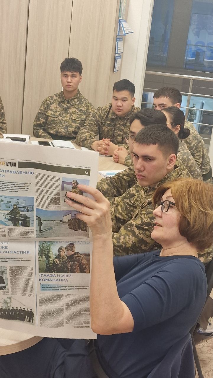 Опытные специалисты, работающие в Медиа-контент центре, поделились со студентами секретами военной журналистики, которая одновременно является сложной и увлекательной сферой. Так, руководитель редакционно-издательского отдела Татьяна Бредихина рассказала о работе с текстом, правильном использовании военной терминологии и создании интересных и содержательных материалов. Руководитель отдела монтажа и дизайна Сания Садықова объяснила основы видеомонтажа и способы привлечения внимания зрителей с помощью современных технологий.