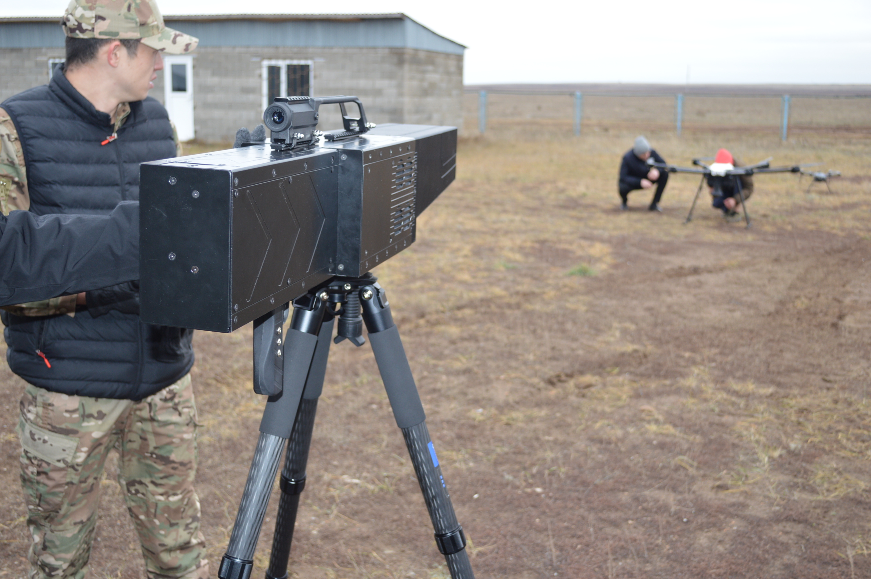 После подъема на определенную высоту и расстояние, начались испытания. Антидрон пушка успешно подавляла сигналы гексакоптера – тот начал мигать красным, а пульт давал звуковой сигнал, предупреждая о потере сигнала. Однако на расстоянии около полутора километров, пушка все же не смогла подавить сигнал. Как позже объясняли представители компаний, из 32 спутников GPS, работавших с дроном, 8 удалось пробить подавление.