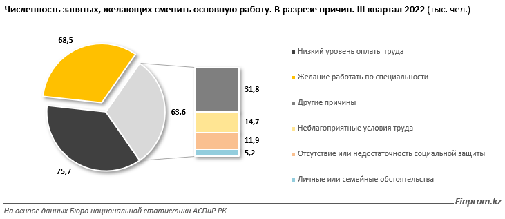 Судя по опросу, только 3,5% работников, не работающих по специальности, настроены на изменение своего трудового места с целью реализации своей профессиональной деятельности. В большинстве случаев низкая оплата труда (36,2%) была основной причиной.