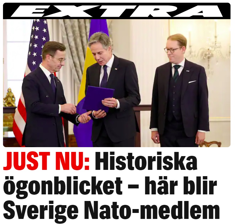 Напомним, Швеция и Финляндия одновременно подали заявки 18 мая 2022 года. Финляндия вступила в НАТО 4 апреля 2023 года.
