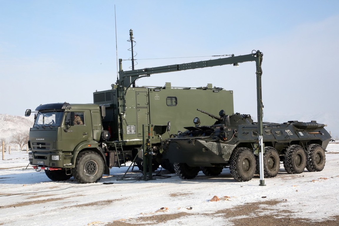 Еще одним средством, используемым в процессе занятий, было специальное оборудование для снижения заметности войск, а именно дымопушка на базе «КАМАЗа» отечественного производства.