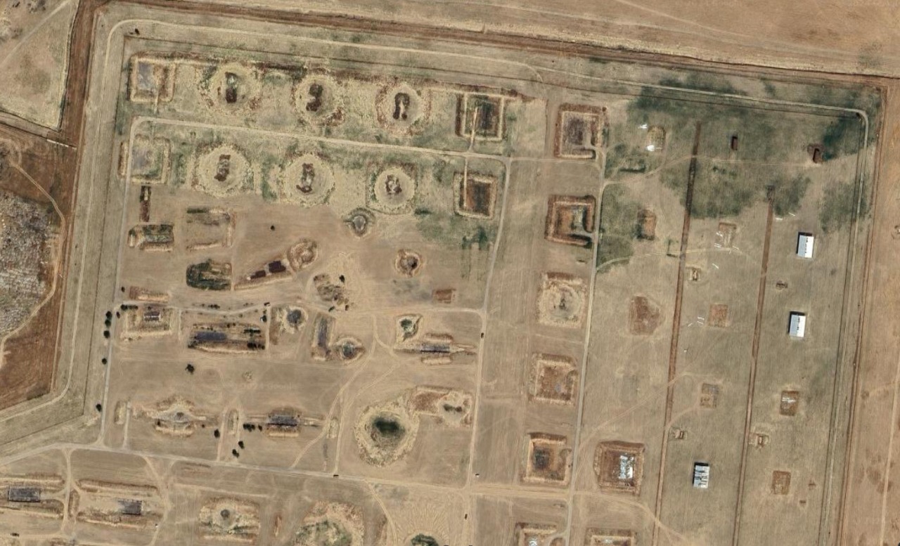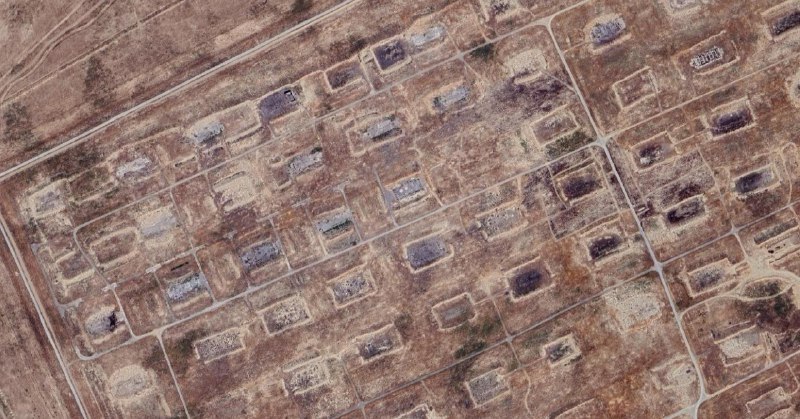 Вид со спутника на территорию складов бывшей В/Ч 89533. Координаты: 46.84712573047155, 75.62091811437514 Фото: Google Maps