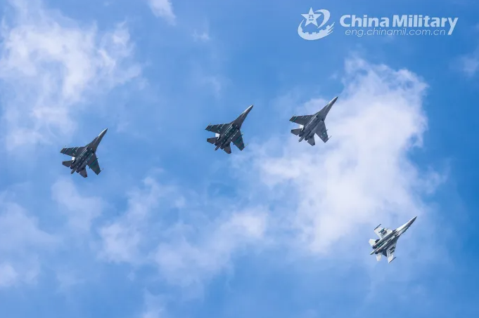 На фото, выложенных на сайте министерства обороны Китая, были изображены четыре истребителя J-16, нагруженные зенитно-ракетными комплексами, которые, что примечательно, включали почти все ЗРК в китайском арсенале. В комментарии к фото, министерство сообщило: “Истребители, принадлежащие авиационной бригаде ВВС НОАК, летают строем во время реальной боевой подготовки 25 ноября 2023 года”.
