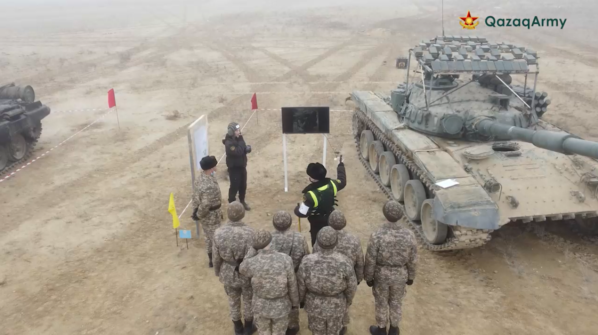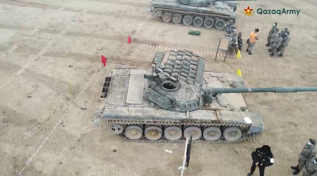 На учебном полигоне «Оймаша» в Мангистауской области танкисты морской пехоты провели учебные стрельбы. На видео, опубликованном МО РК, зафиксирован танк Т-72 с наваренным козырьком на башне. На самом козырьке видны элементы динамической защиты «Контакт». Это может говорить о том, что в оборонном ведомстве наконец начали испытывать нововведения, появившееся еще до начала военного конфликта в Украине.