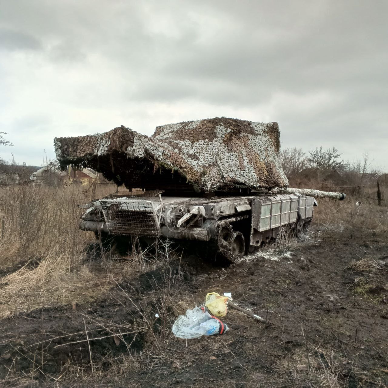Росийский танк Т-80БВ с огромным козырьком. Фото: t.me/milinfolive