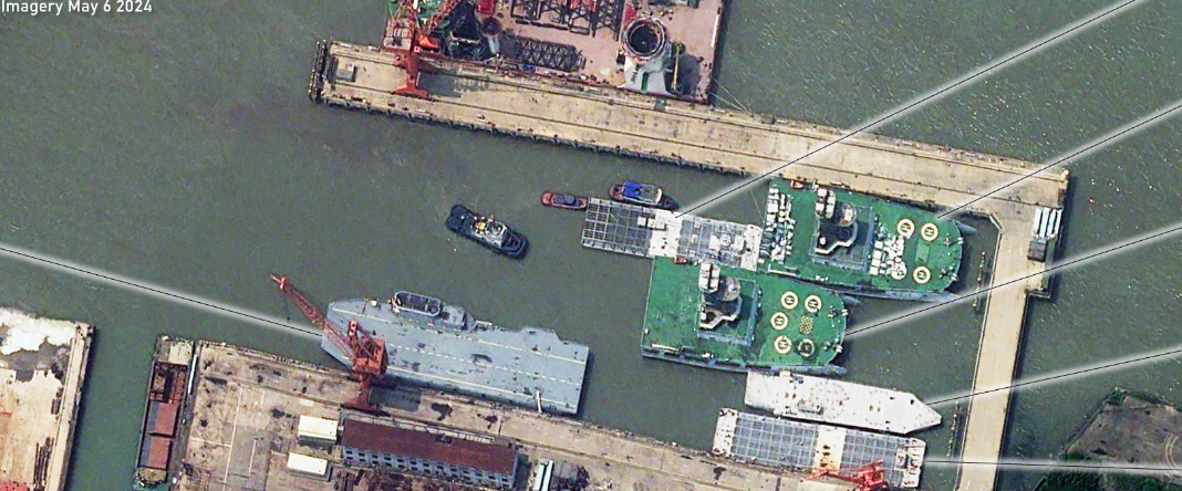 Эксперты сообщили, что спутниковые снимки с верфи на Янцзы, позволяют предположить, что Китай тайно построил новый авианосец специально для размещения беспилотных летательных аппаратов (БПЛА) с неподвижным крылом. Характеристики таинственного корабля, спущенного на воду в декабре 2022 года, но о котором до сих пор не сообщалось, отличались от обычных американских или китайских авианосцев. Он отличается меньшим размером и конструкцию прямой палубы, не позволялавшая самолетам взлетать и садиться одновременно. Низкая взлетная палуба судна предполагала недостаточное пространство для авиационного ангара внизу, чтобы поддерживать высокий темп или длительные полеты. Это ограничило бы количество самолетов, обслуживаемых судном, но имело бы смысл в качестве перевозчика беспилотных летательных аппаратов.