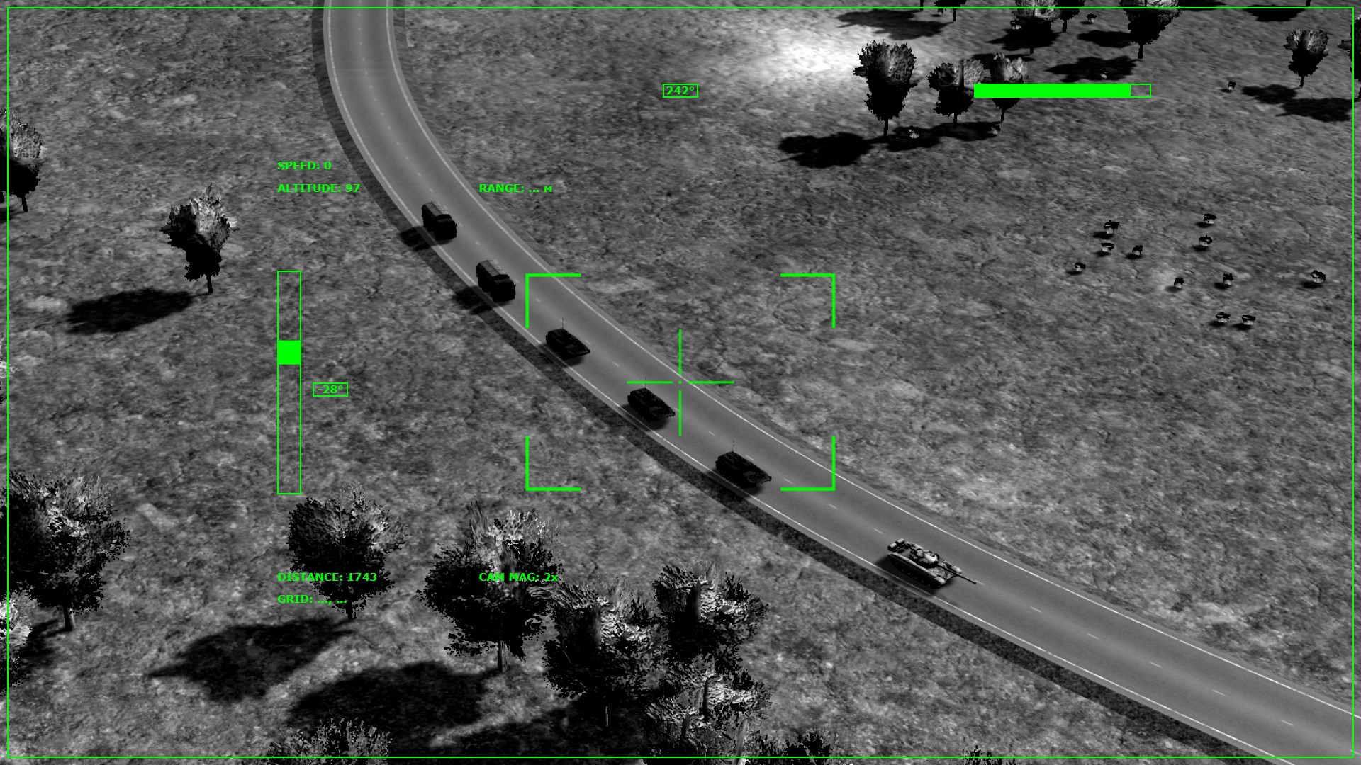 В симуляторе наводчика артиллерийского орудия обучаемый осваивает навыки наведения орудия при помощи орудийной панорамы. Тренажер стрельбы с визуализацией траектории полета снарядов позволяет наглядно оценить правильность наведения, увидеть допущенные ошибки.