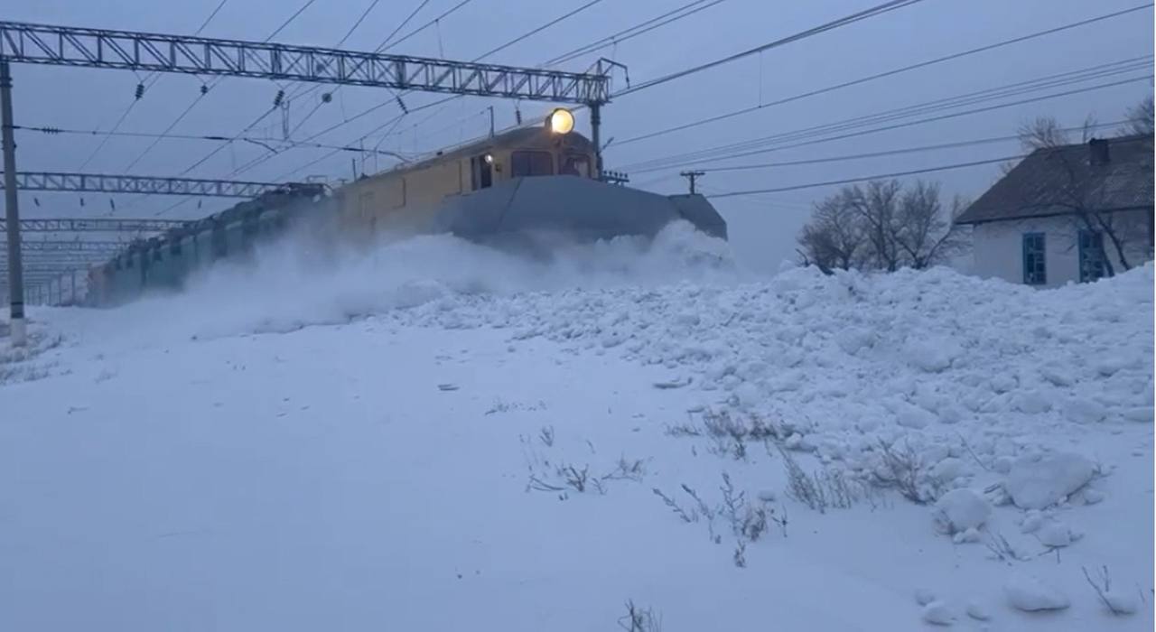 В КТЖ показали, как в Жамбылской области пробивают путь для пассажирских поездов. В экстремальных условиях непогоды железнодорожники обеспечили пропуск пассажирских поездов по затруднённым участкам, сообщает Sarbaz.kz.
